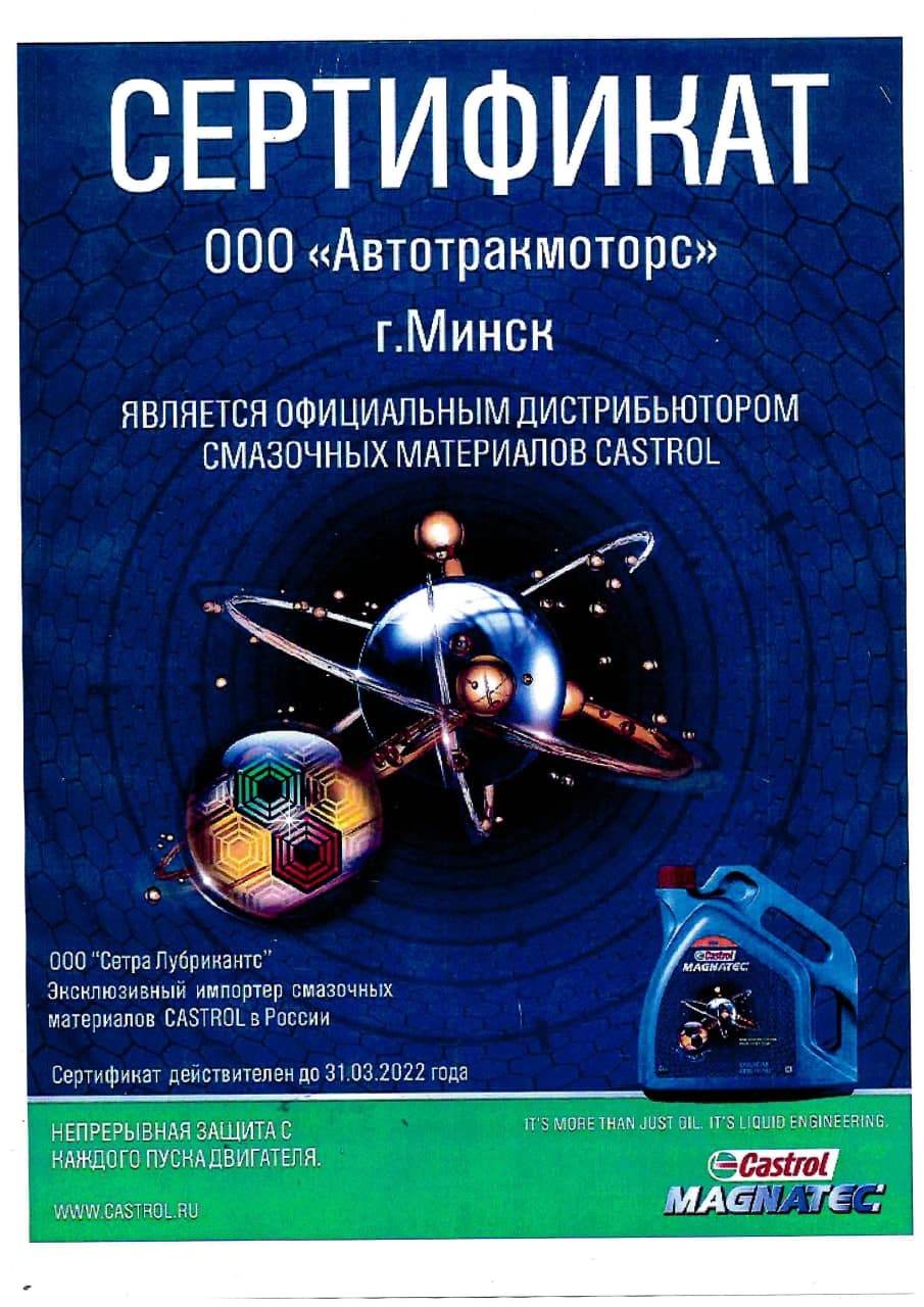 СООО "АвтоТракМоторс" - официальный дистрибьютор Castrol в РБ.