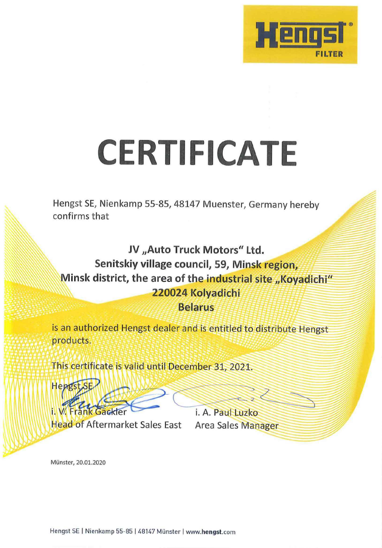 всех мировых производителей легковых и грузовых автомобилей, а также специальной, строительной и прочей техники. Hengst производит современные системы фильтрации и элементы двигателя. Традиционное качество и инновационные технологии объединяются для того, чтобы создать товар с уникальными качественными показателями. Продукция компании включает широкий спектр запчастей, начиная от фильтрующих элементов масляных, топливных и воздушных систем фильтрации, а также фильтров салона, до мультифункциональных модулей для всех типов двигателя.